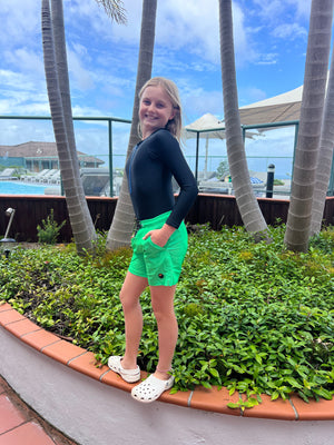 Designed for kids who prefer a traditional 'boy' cut, our Tommy shorts are worn by everyone. Girls often pair our shorts with a bikini top or one piece swimsuit.